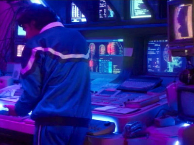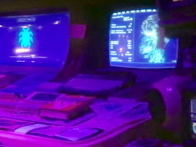 In Ted Kord's house the group encounter his old Blue Beetle lair in which there are a number of Commodore 64s that Rudy uses to try to work out how to get the Scarab out of Jamie.
