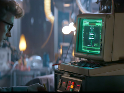 Dr Pinfield uses a BBC Micro to control the equipment that extracts ghosts from haunted objects.