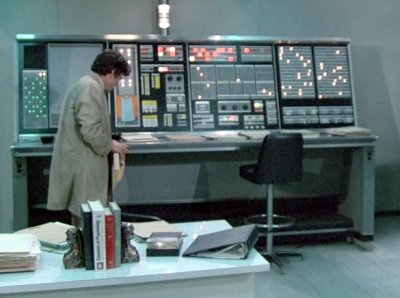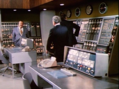 A bank of SAGE panels are used the in UNCLE headquarters mostly, it seems, for communication purposes.