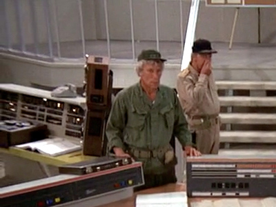 UNIVAC 1108 panels form part of the computer system in the mocked-up future command centre.