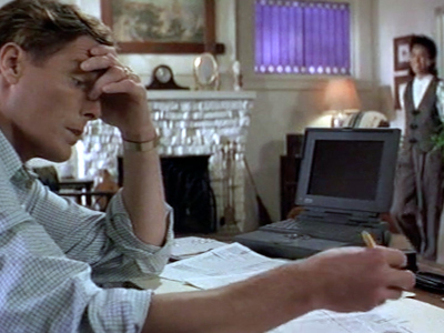 Nick uses a Powerbook 140 to sort out a large collection of bearer bonds in Jakarta.