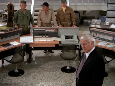 UNIVAC 1108 panels form part of the computer system in the mocked-up future command centre.