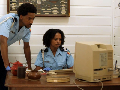 Seb and Mattie search the murdered woman's house and check her search history on her Macintosh SE/30.